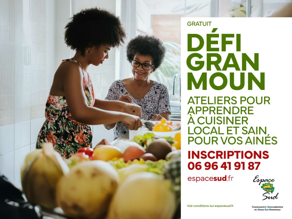Vous avez le souci de maintenir ou d’améliorer votre capital santé par une alimentation locale saine, savoureuse et équilibrée, participez au : « Défi Gran moun » organisé par la Communauté d’Agglomération de l’Espace Sud Martinique.