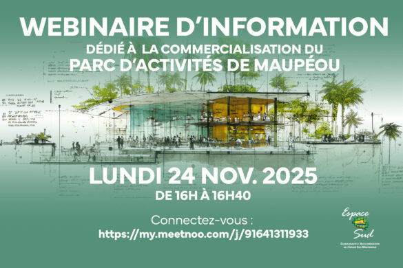 Découvrez les opportunités du Parc d’activités de MaupéouDans le cadre de notre engagement pour le développement économique du territoire, l’Espace Sud a le plaisir de vous convier à un webinaire d’information dédié à la commercialisation du Parc d’activités de Maupéou. Le lundi 24 novembre, de...