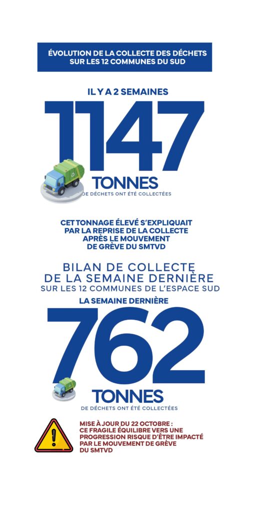 La situation de la collecte des déchets dans les 12 communes de l’Espace Sud connaît des fluctuations importantes, passant d’un rattrapage massif à une nouvelle incertitude. Voici un résumé de l’évolution récente.